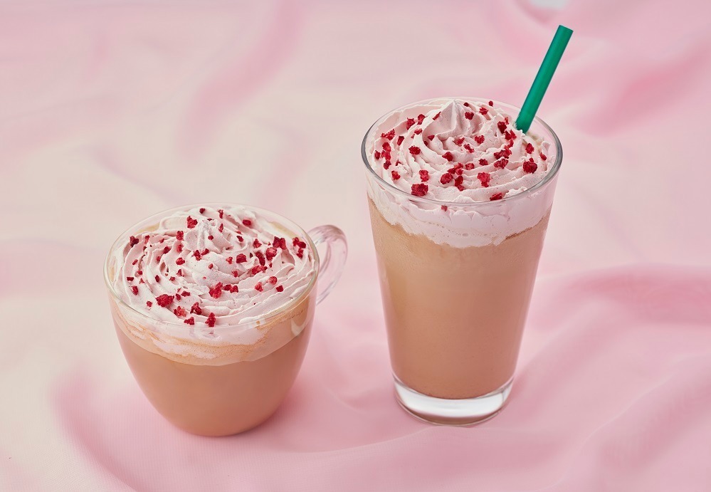 鮮やかなピンクが目を引く「ルビーチョコレートフラペチーノ」は、その特別な色合いとフルーティーな味わ…